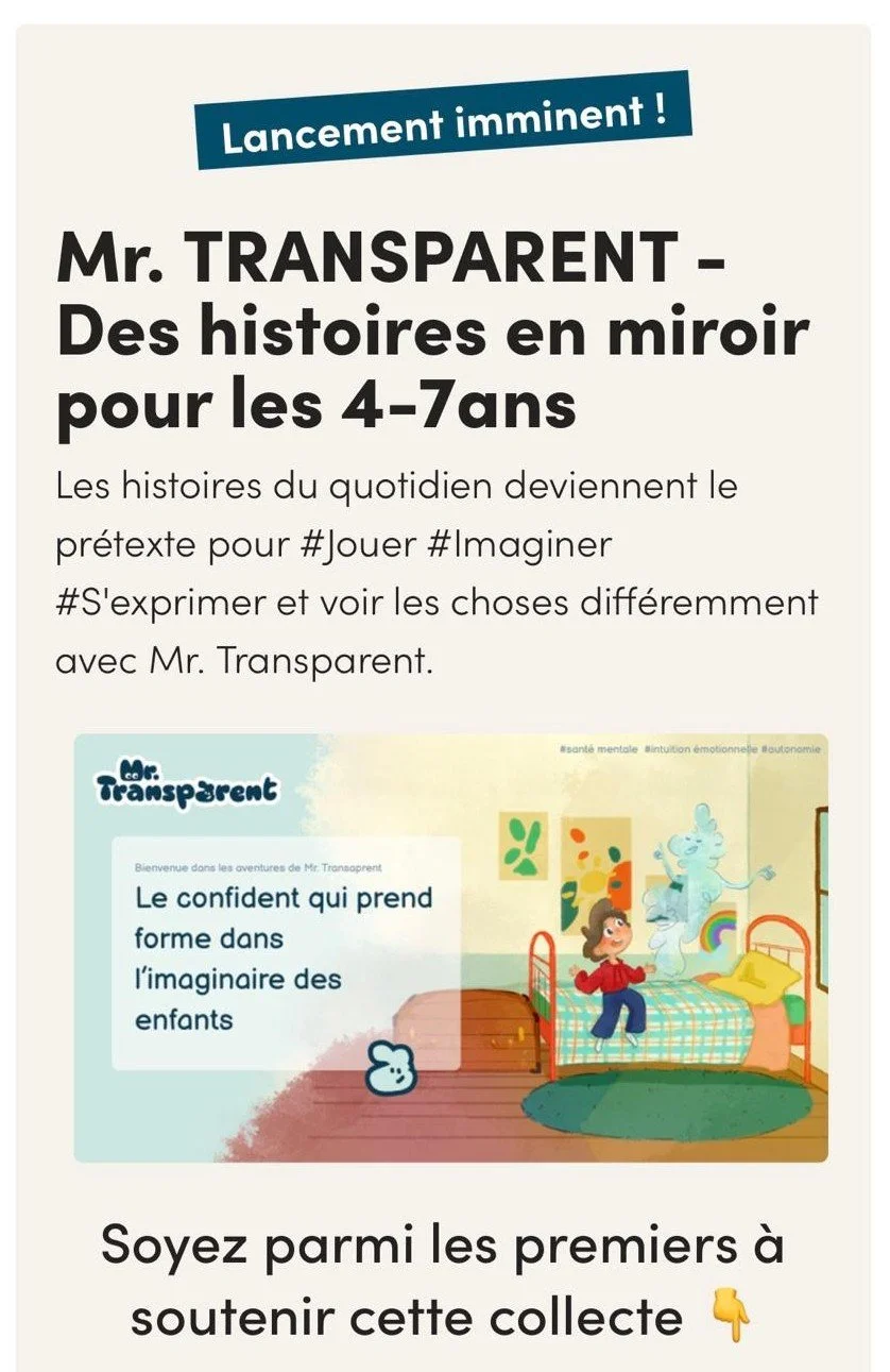 Soutenir Mr. Transparent, ce n’est pas seulement financer un projet. C’est participer à une démarche éducative et humaine, qui remet l’écoute au coeur de la relation avec les enfants.